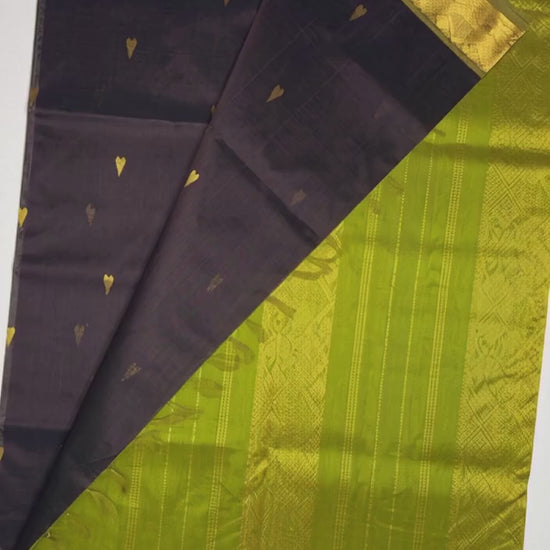 Brown with green border Silk Cotton Saree
