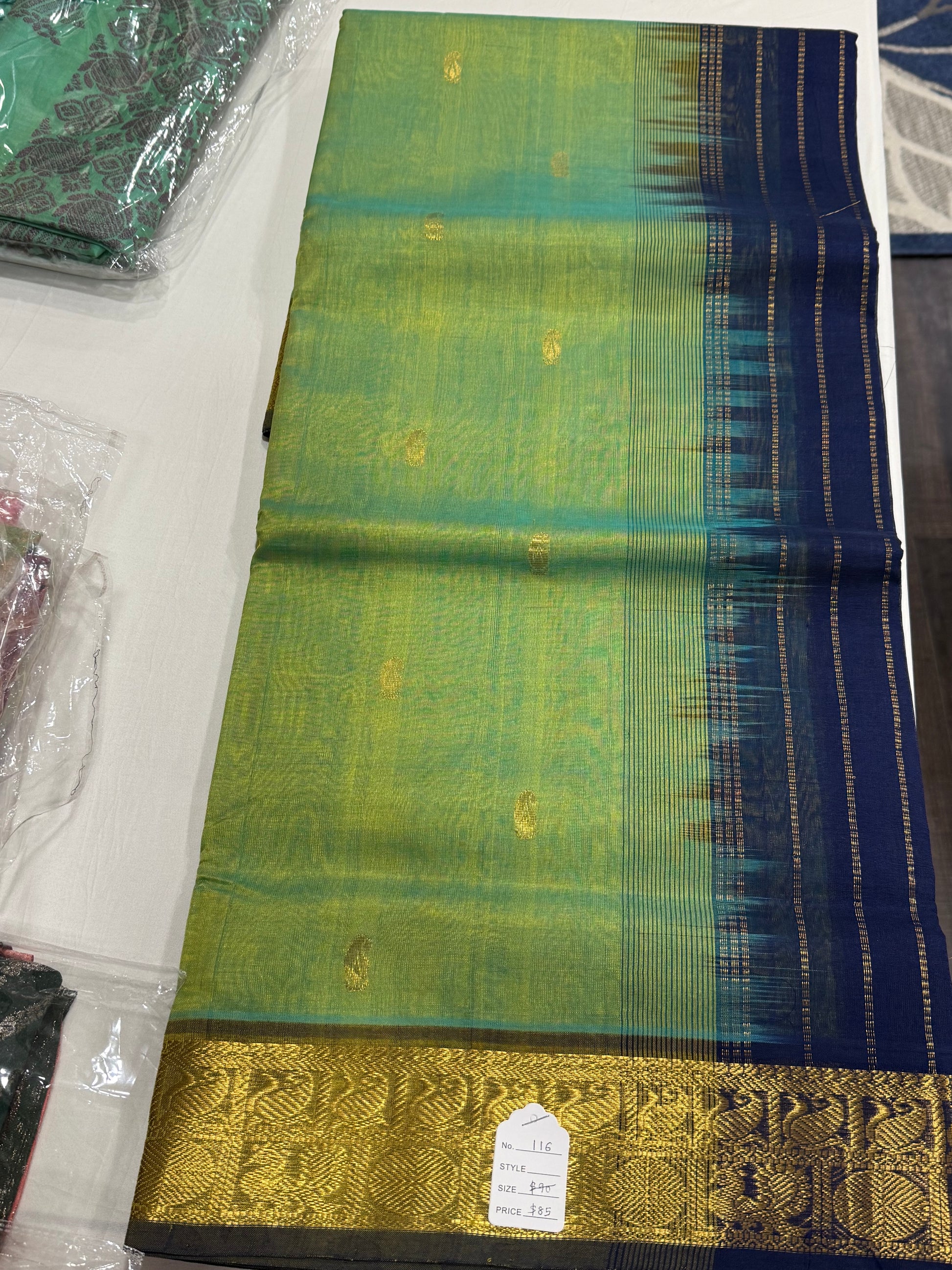 Beautiful pure silk cotton saree in Brown color with Green border.